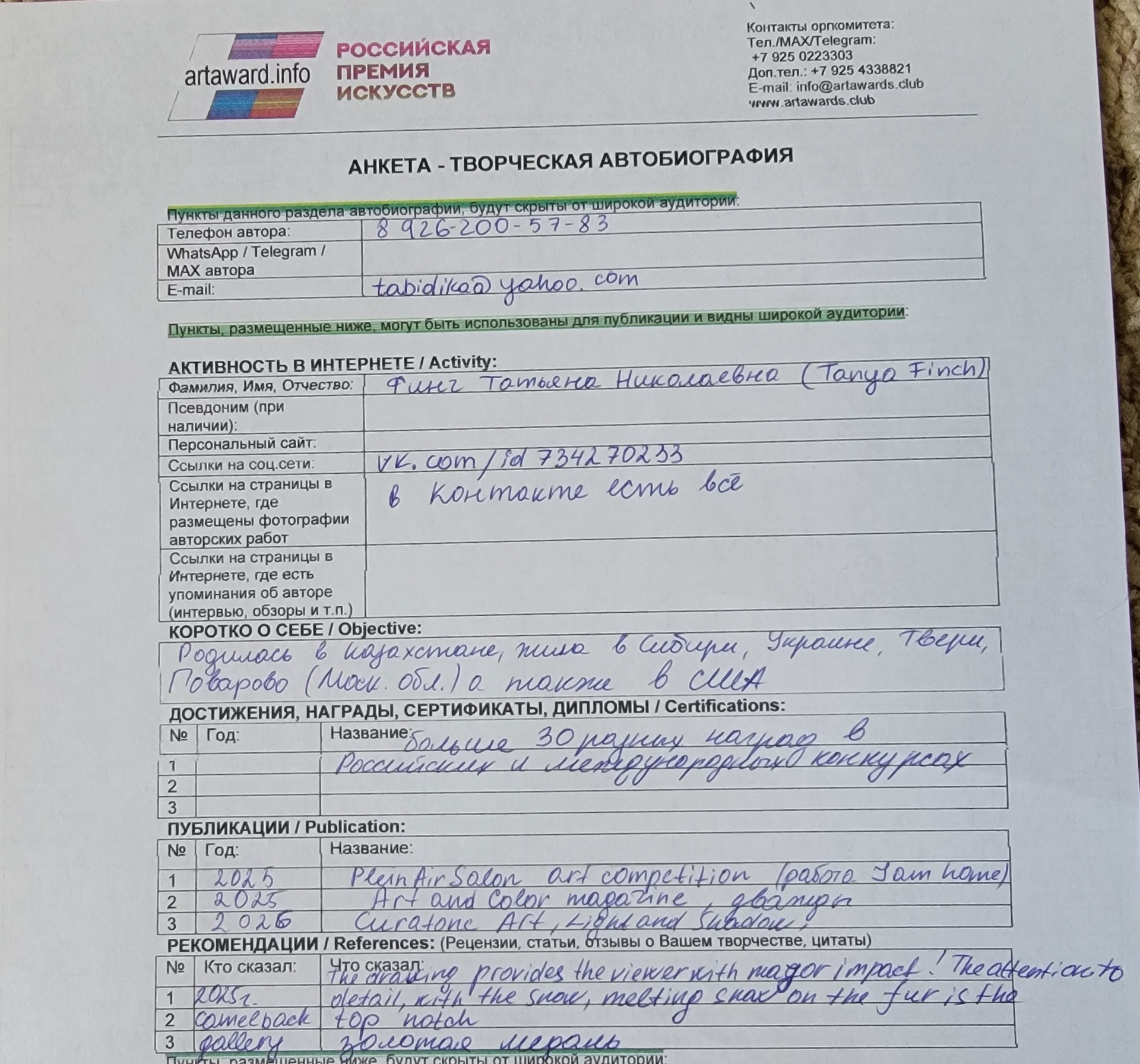 Аржановская Ольга Викторовна