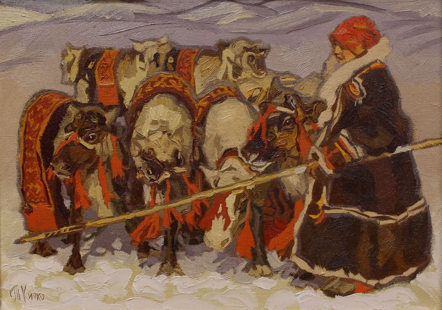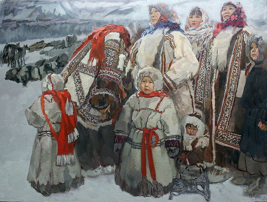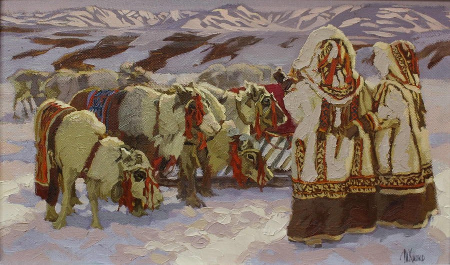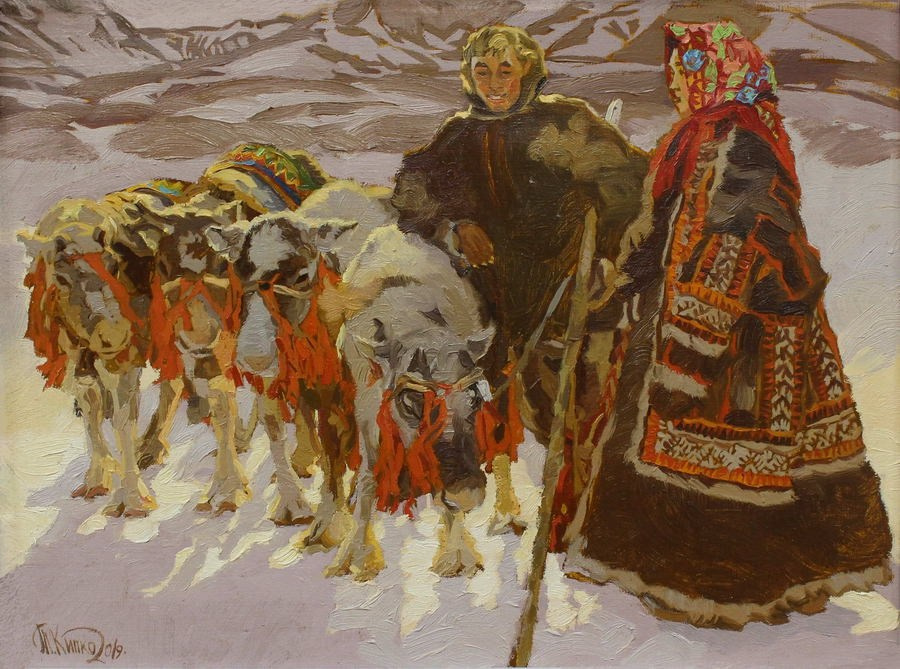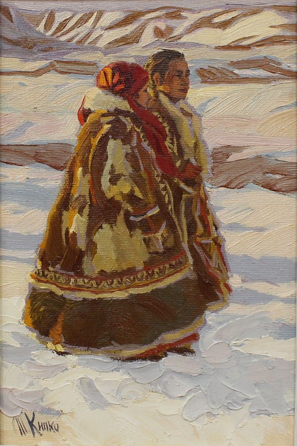 Творчество художника Татьяны Кипко, являет собой уникальное сочетание реалистичности и лиризма, глубоко погружая зрителя в атмосферу сурового и прекрасного Заполярья. В ее работах, через яркий декор одежды и сдержанные цвета заснеженной Арктики, оживает мир кочевых народов, их быт и духовная связь с природой.