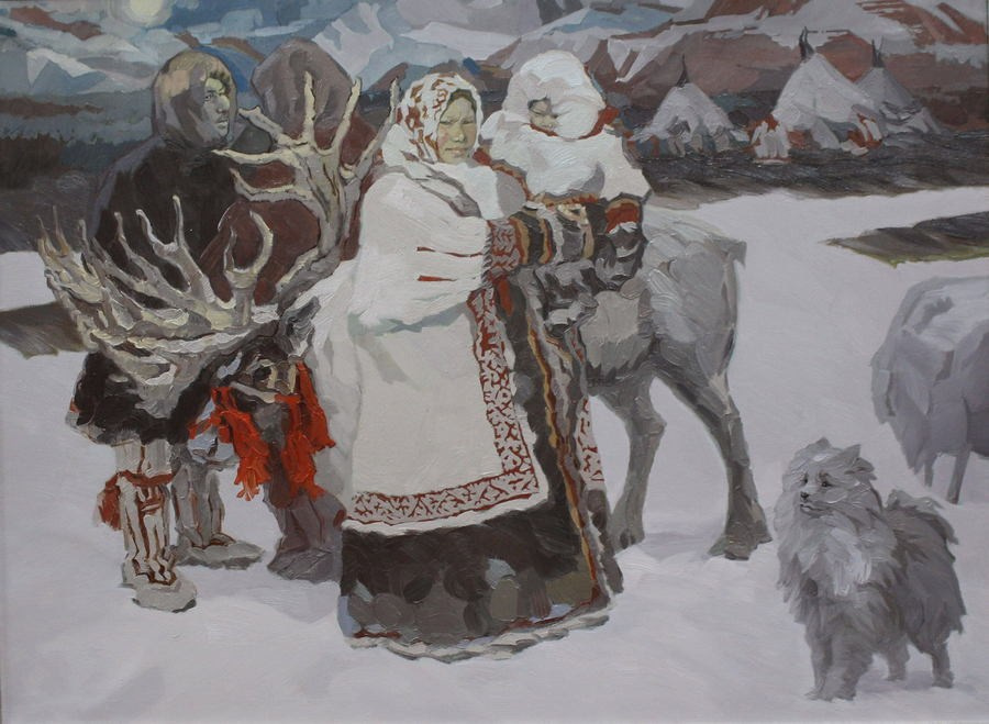 X Окружная выставка современного изобразительного искусства Арт -Ямал. Каталог. Салехард 2022 (с.12) «Северяне», холст, масло 100×135