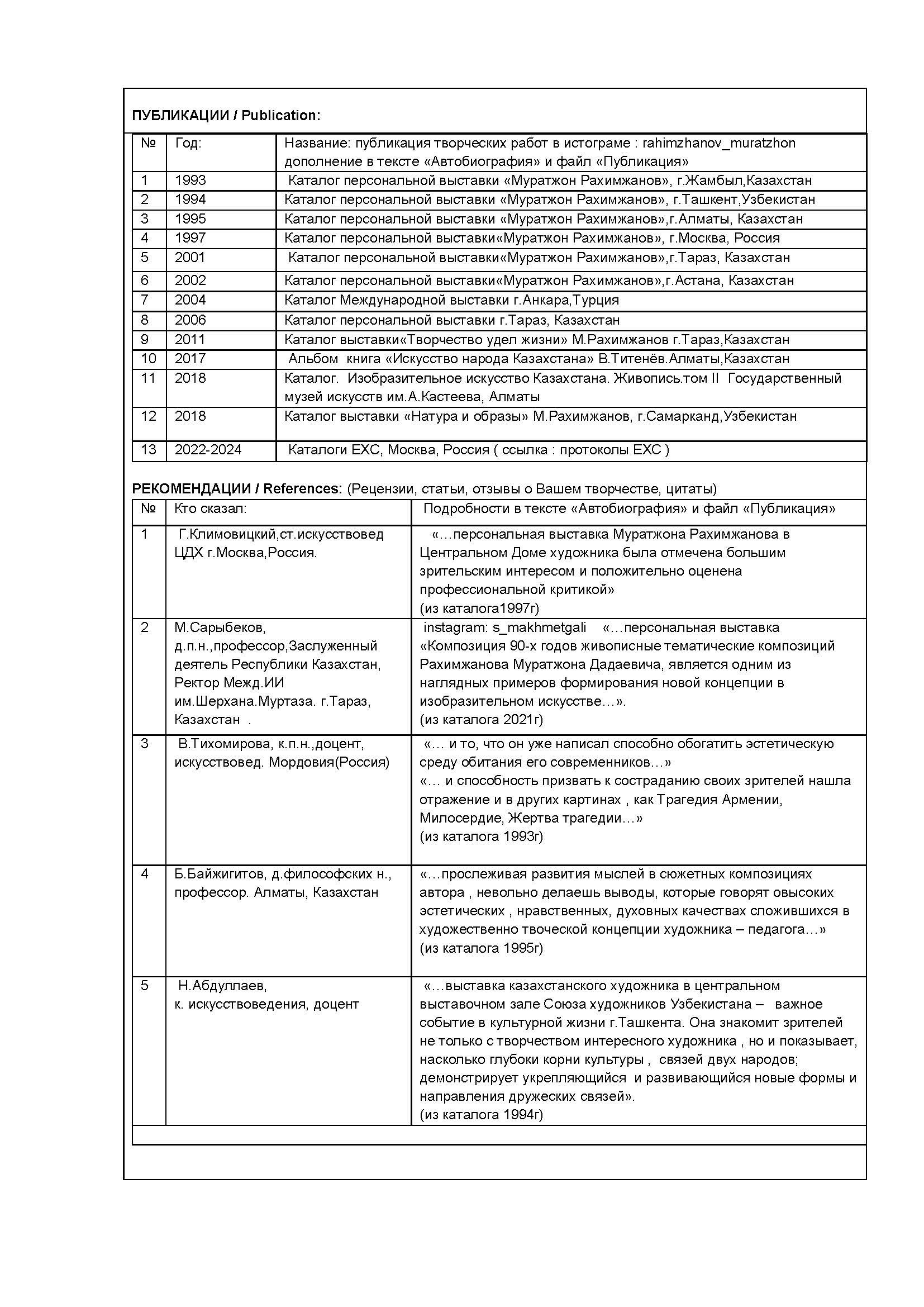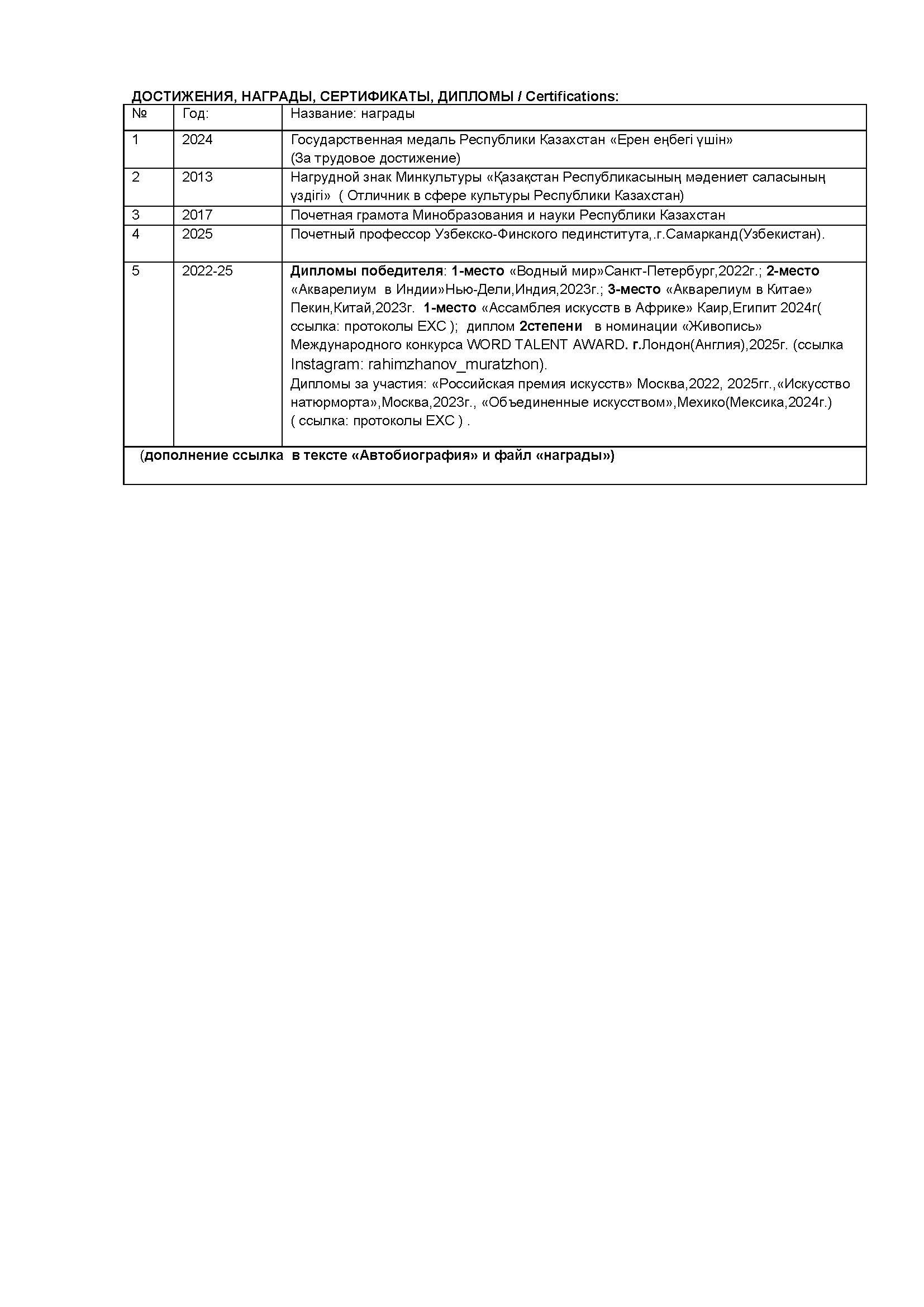 Я, Рахимжанов Муратжон Дадаевич, родился в 1951 году городе Джамбул (ныне город Тараз), Республика Казахстан. В 1974 году окончил художественно-графический факультет Ташкентского государственного педагогического института им. Низами. С октября 1976 по май -1977 года самостоятельно занимался рисунком и живописью с натуры в мастерской Народного художника СССР, профессора В. М. Орешникова при институте живописи, скульптуры и архитектуры им. Репина (Санкт-Петербург), февраль — март месяцы 1989 года стажировался, занимаясь рисунком и живописью с натуры в мастерской Народного художника СССР, профессора Р. А. Ахмедова при Ташкентском театрально-художественном институте им. Островского (Ташкент, Узбекистан).