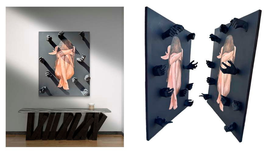 Мэри Саруханян родилась 8 декабря 1998 года в Москве. С детства она любила рисовать, даже не подозревая, что это станет её профессией. Однажды она почувствовала запах краски, и эта страсть сразу захватила её. Сейчас она работает уже 6 лет. Мэри создала свой собственный бренд. В своих работах она использует разные техники и материалы, такие как масло, акрил и другие виды покрытий. Один из главных элементов её творчества — это гипс. Она наносит его на поверхность ДВП, создавая объёмные детали в виде рук. Эти гипсовые руки придают её картинам особую выразительность и красоту, делая их уникальными и интересными. Также осуществляются работы в различных стилях, включая современную классику, живописные полотна и абстрактные композиции.