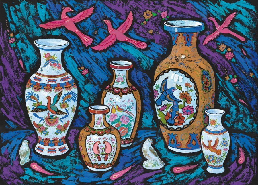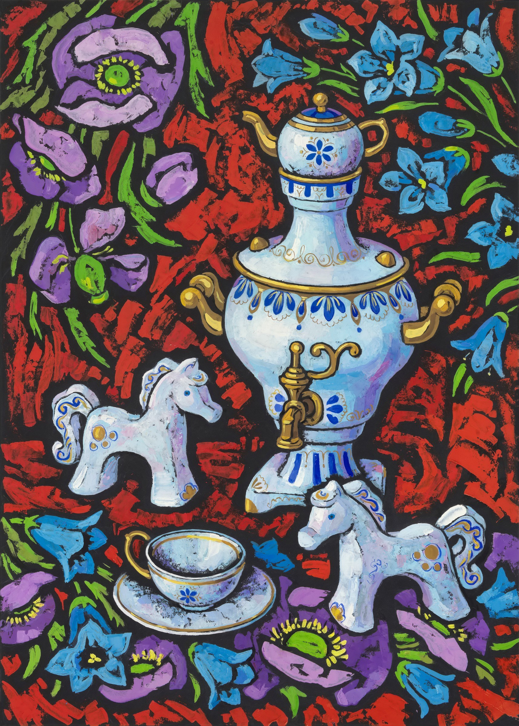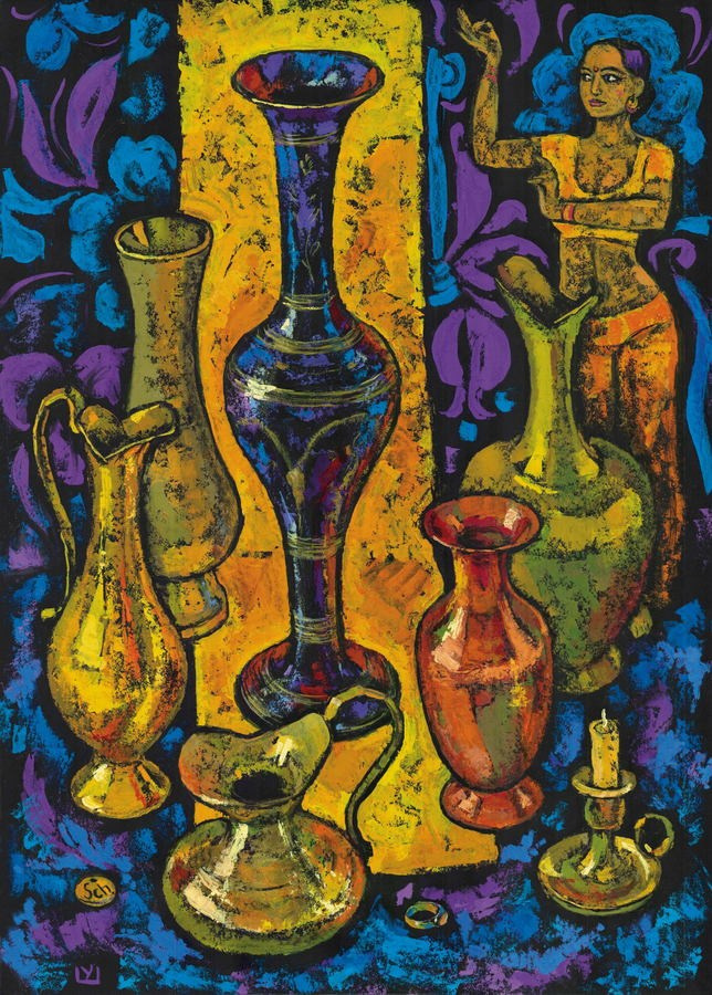 Натюрморты-путешествия — вещь необычная. Художница совершает свои путешествия мысленно, ибо предметы для неё — не мёртвая натура, а вполне живая, способная поделиться с художником своими тайнами.