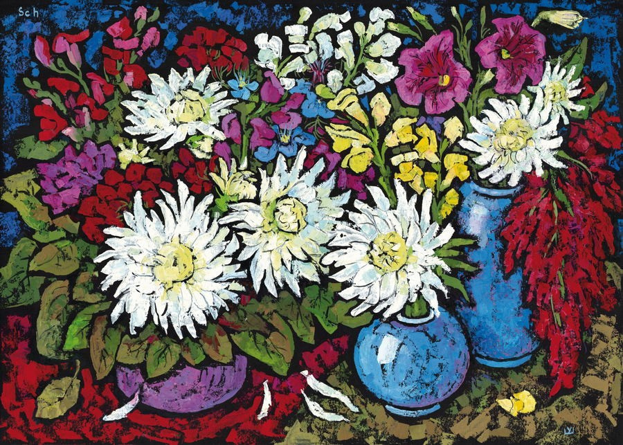 Лаконизм и немногословность композиций сочетаются с живостью уверенного письма, эмоциональной насыщенностью. Ее натюрморты обладают самоценной декоративностью. Подобная система художественного языка ведет свою родословную от фовизма и экспрессионизма, и еще глубже — от отцов основателей современной станковой живописи Ван Гога, Гогена, Сезанна, Матисса.