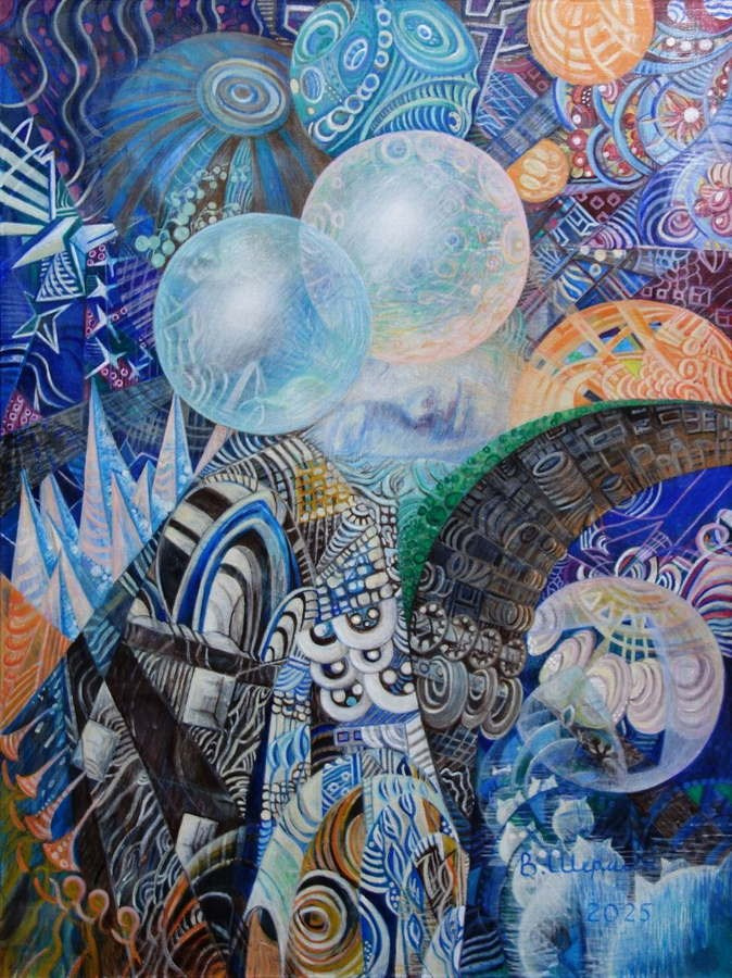 Мои работы — это поиск гармонии в хаосе. Это постоянный эксперимент, с сочетаниями цветов и форм. Иногда я начинаю с четкой идеи, с определенного узора, который хочу воплотить. Но чаще всего процесс идет сам собой, подталкиваемый внутренним чутьем. Я позволяю краскам вести меня, позволяю им подсказывать, куда двигаться дальше. И в этом непредсказуемости рождаются образы, которые удивляют и меня саму.