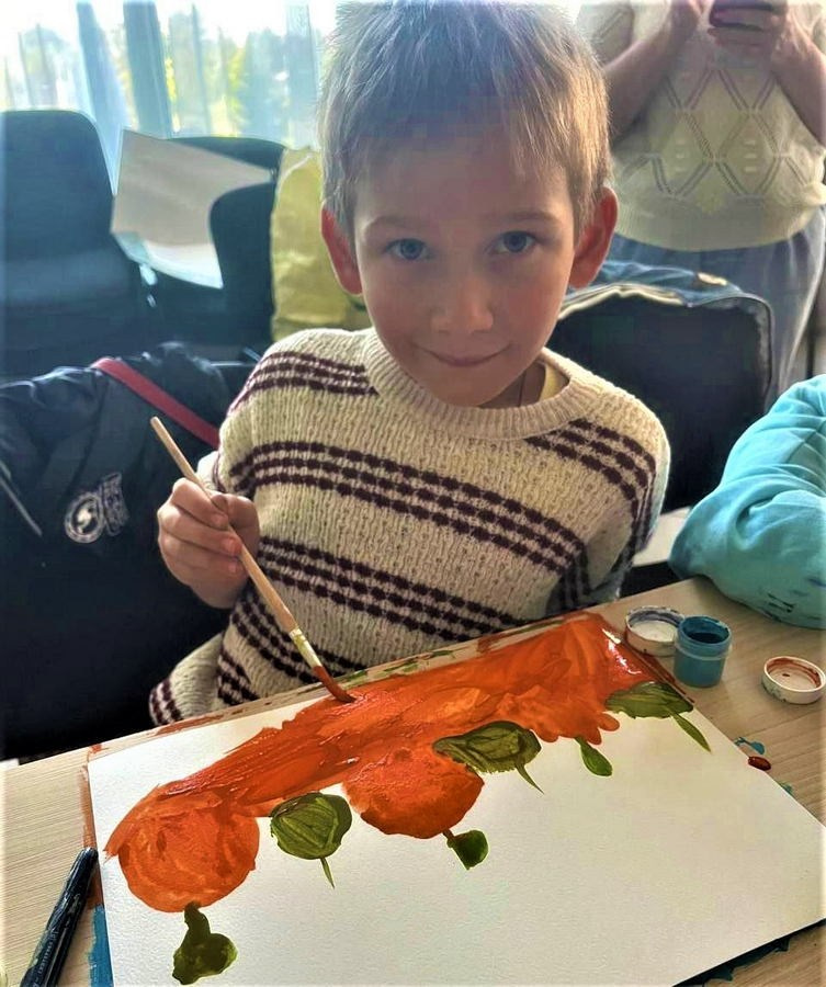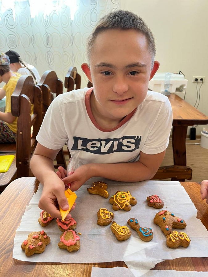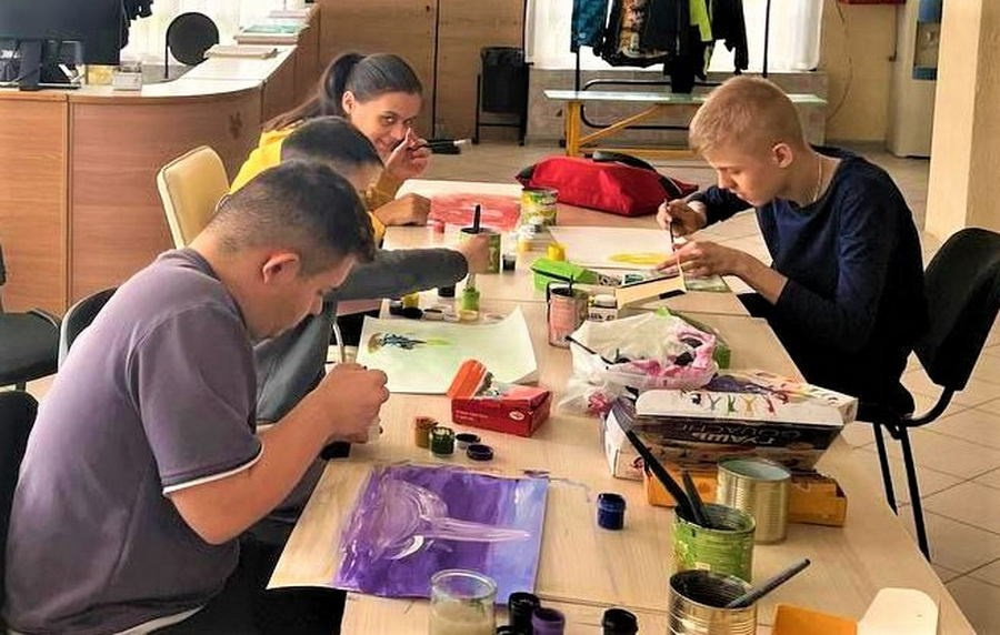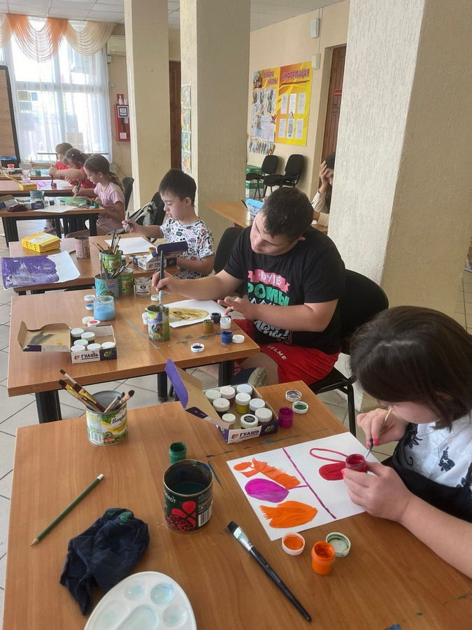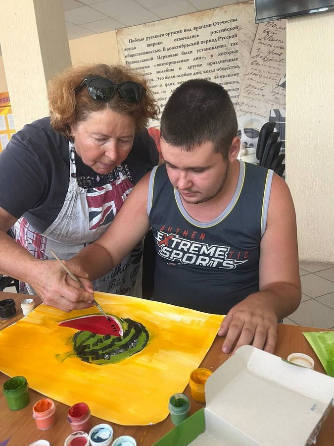 Художник безвозмездно занимается в ребятами с ментальными заболеваниями различной степени тяжести из Благотворительного фонда «Солнечный городок» в возрасте от 5 до 23 лет. Ребята, прибывающие на занятия в мастерскую художника «Легкая кисть» (в том числе колясочники), в силу физического состояния, сначала не могут держать кисть в руках, но постепенно осваивают различные техники — сначала самые простые, а потом и более сложные. К каждому ребенку художник находит индивидуальный подход, руководствуясь в работе собственной методикой — кадлый ребенок рисует индивидуальную работу, таким образом художник развивает сильные стороны у каждого. Многие ребята в силу заболеваний не могут говорить, но постепенно, осваивая приемы рисования, а начинаем с самого простого — учимся держать кисть, рисуем пальчиками, помаленьку начинают разговаривать — речевой центр и пальчиковый в мозге человека находятся рядом, а мелкая моторика дает толчок развития речевому центру. Как только происходит такое чудо в дело вступает логопед. Для ребят из мастерской «Легкая кисть» занятия живописью не только вопрос увлечения — это вопрос жизни и социализации. С 2025 года художник занимается не только с ребятами-инвалидами, а также с мамами этих детей, в том числе с женщинами, потерявшими на СВО своих близких. Живопись это еще мощный инструмент психологической помощи! Во время рисования мозг активизирует множество областей, улучшая когнитивные функции и снижая стресс: происходит переключение с тревожных мыслей на творчество. Живопись врачует душевные раны! Ежегодно, ко Дню матери в клубной системе проводится выставки этих работ. Однако, живопись — это не только бумага и холсты. Уже три года мамы ребят из мастерской «Легкая кисть» пекут пряники для ребят, находящихся в госпиталях и на передовой СВО, а ребята их расписывают — кисть меняем на кондитерский мешок, которым работать гораздо проще. Эти сладости напоминают бойцам о доме и тех, кто их ждет. Так же художник осуществляет огромную просветительскую работу среди детей и молодежи, рассказывая о народных художественных промыслах и культуре России. Слушателями являются в том числе и курсанты Кадетского корпуса — ребятам тоже интересна эта тема. Просветительская работа осуществляется на базе музеев и администраций сельских поселений Краснодарского края. Лекции построены таким образом, чтобы поколению зуммеров было интересно. Так в историко-краеведческом музее г. Геленджик в начале 2026 года художник в интерактивной форме провела лекцию «Народные промыслы — душа России», ребятам 5-7 классов рассказала о русской матрешке и как она связана с русскими художниками — Васнецов, Серов, писателем Аксаковым, откуда она вообще взялась и где связь с Японией; о Гжели — почему она сине-белая; о Дымковской игрушке — причем здесь женщины; о Скопинской керамике и о кошках — где связь; о Жостовской росписи и как она увязана с английским королевским двором; о Кадомском венизе и какая связь у этого народного промысла с мушкетерами Франции и монахинями Италии; о Вологодском кружеве и при чем здесь Великая Отечественная война и ленд-лиз; о хохломской росписи — почему хохломское золото это серебро… и еще много чего интересного в том числе и о ремеслах Краснодарского края. Рассказывая о народных художественных промыслах ху