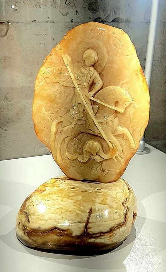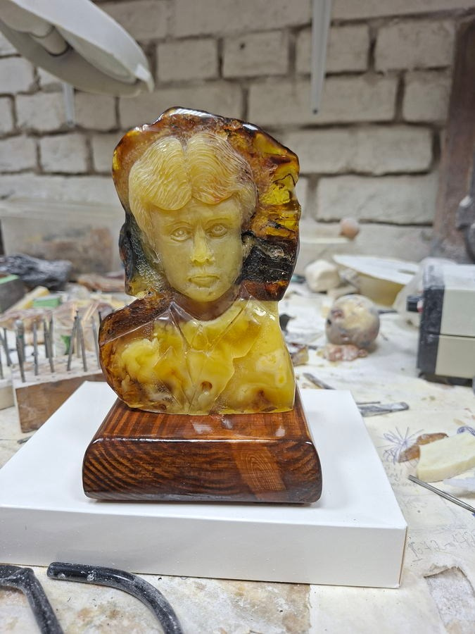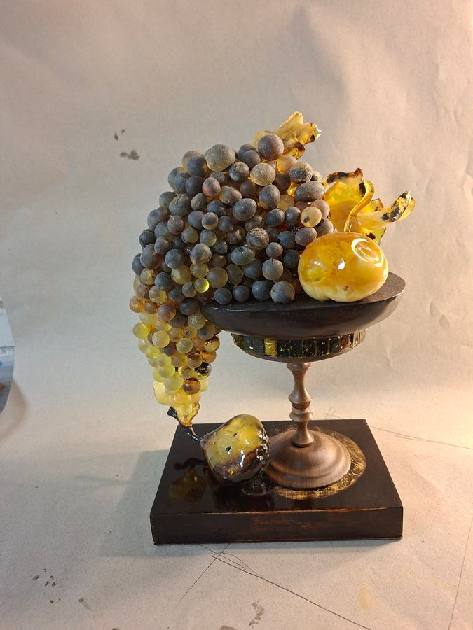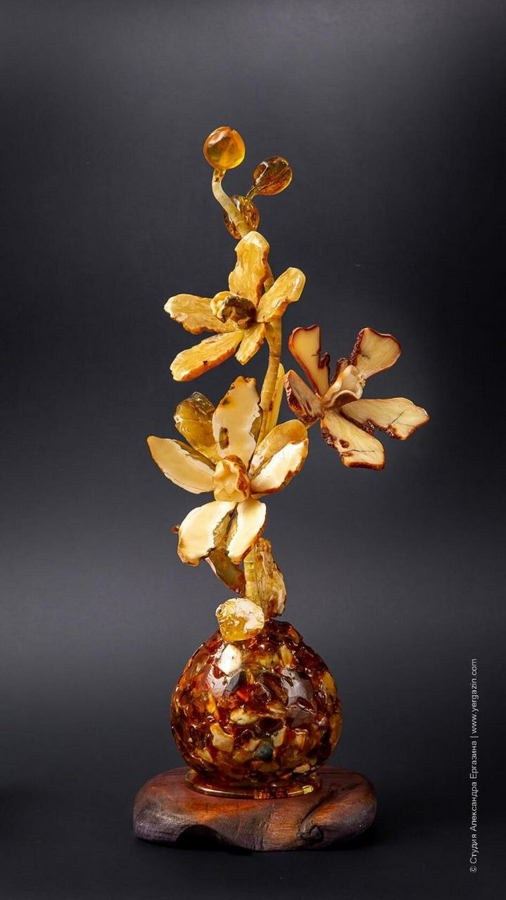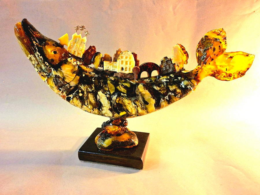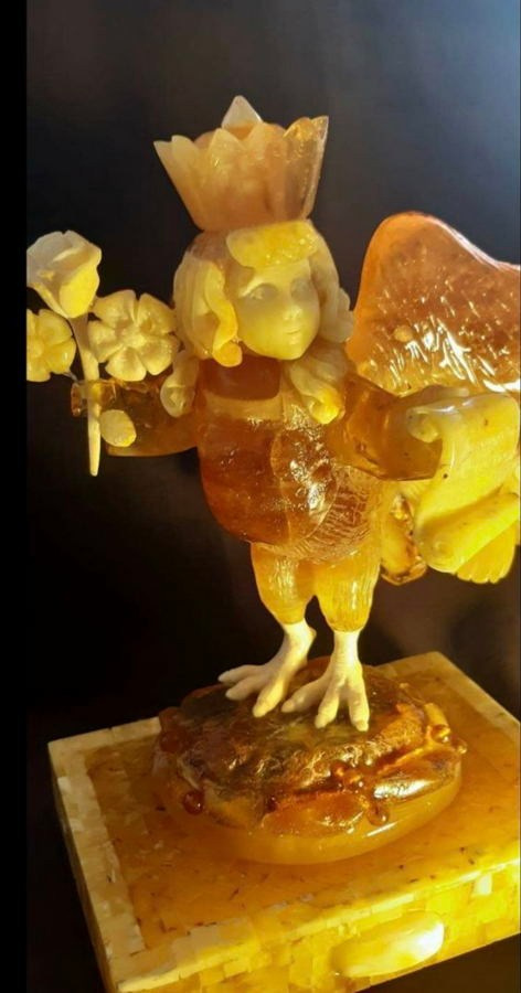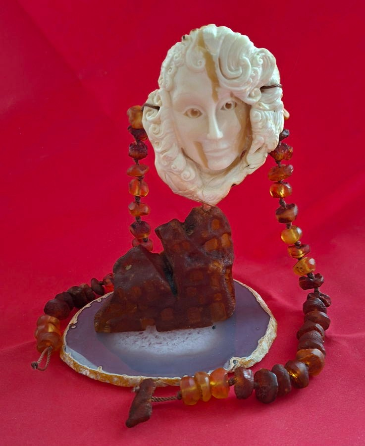 «Особенностью творчества Людмилы Высоцкой с молодости является ее тяготение к изделиям скульптурной пластики с тактильным контактом с янтарем».