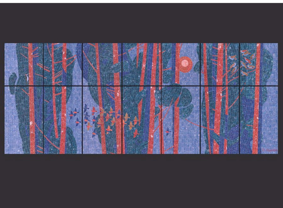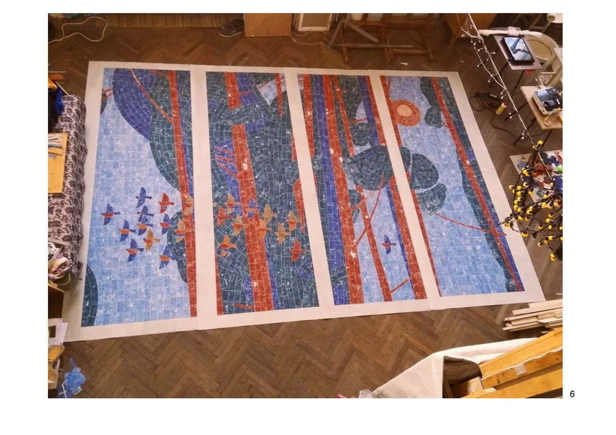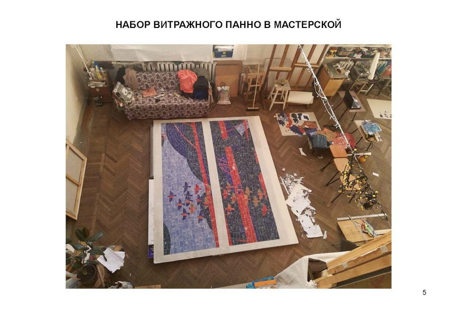 По условиям конкурса, в вестибюле необходимо было разместить стилизованный витраж с пейзажем окрестностей Ленинградской области. В основе своего творческого поиска я решил использовать тему Родины — не громкую и парадную, а тихую, личную, узнаваемую. В природе, которую я изображаю, человека часто не видно, но его чувства и восприятие наполняют пейзаж незримым присутствием. Главным действующим лицом становится сам зритель: тот, кто всматривается в работу, проживает её, наполняя своими эмоциями. Так возникает диалог и рождается душевное единство человека и природы.