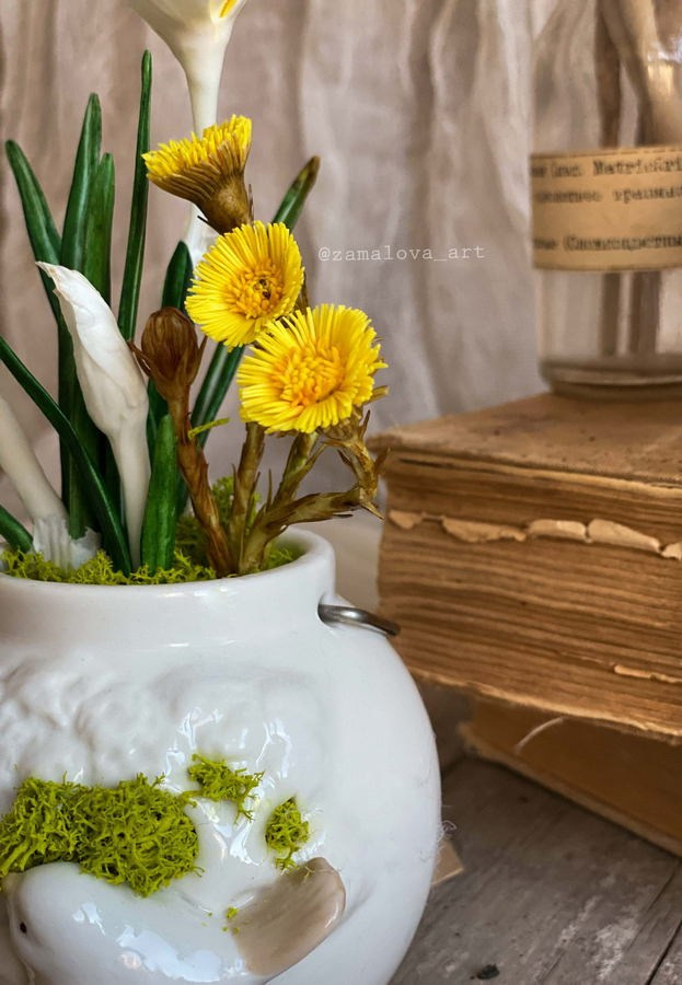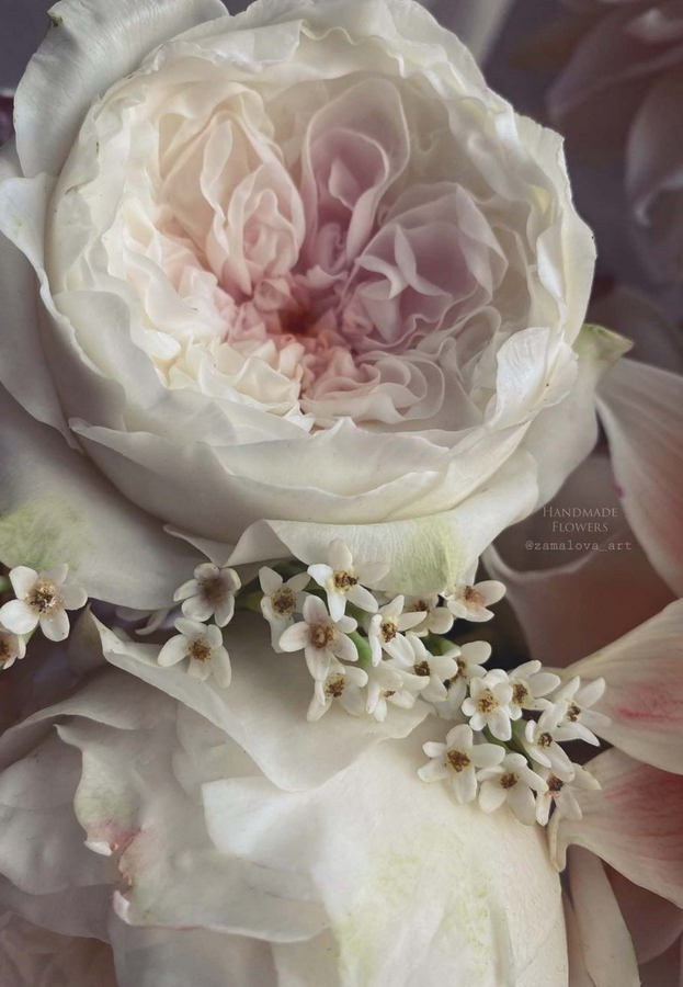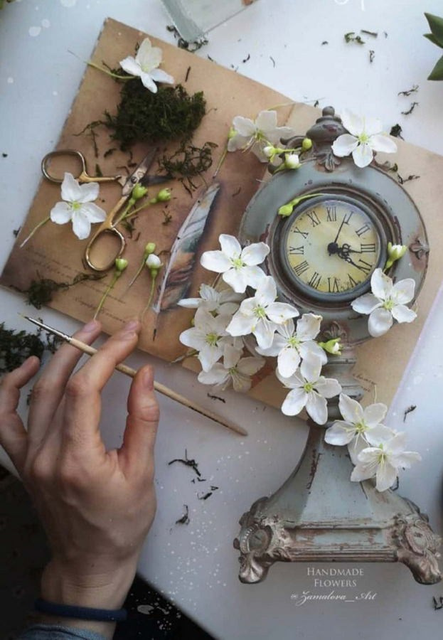 В работе чаще всего я пользуюсь полимерными глинами, в частности, с так называемым «холодным фарфором». Этот материал часто воспринимается как демократичная альтернатива благородной керамике. Моей же задачей является доказать обратное: вывести его на уровень, где он выступает не как имитатор, а как самостоятельный скульптурный материал, способный передавать тончайшие нюансы — от упругой силы распускающегося бутона до хрупкости увядающего лепестка.