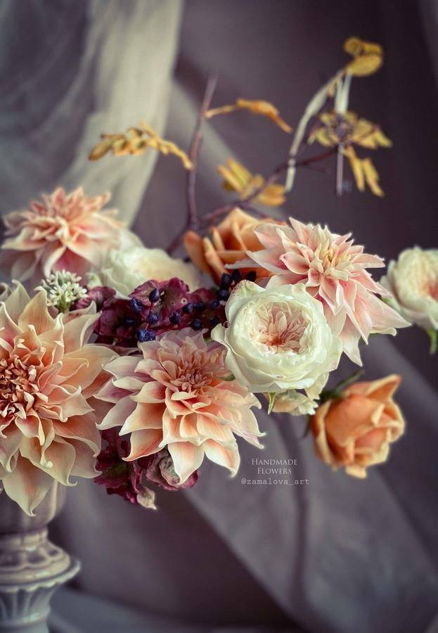 Мои цветы не являются гербарием или слепком, отлитым из формы. Каждый цветок я собираю вручную, подключая инженерный подход. Я сознательно отказываюсь от излишней декоративности в пользу чистоты линии и тактильной подлинности. Моя цель — вызвать у зрителя не просто эмоцию узнавания («как живые!»), а более глубокое ощущение причастности к тайне рождения и угасания, а также попытка вернуть зрителю утраченную способность к внимательному, неторопливому рассматриванию деталей.